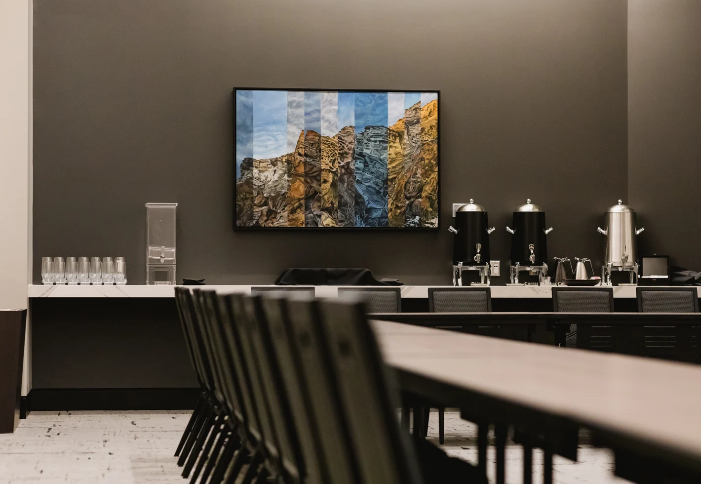 The Exchange is a flexible, lobby-style space designed for meetings and events, with adaptability for any time of day. Featuring abundant natural light and thoughtfully arranged furniture groupings, this space is ideal for hosting informal and impromptu meetings, creating a welcoming and comfortable atmosphere for event attendees.
