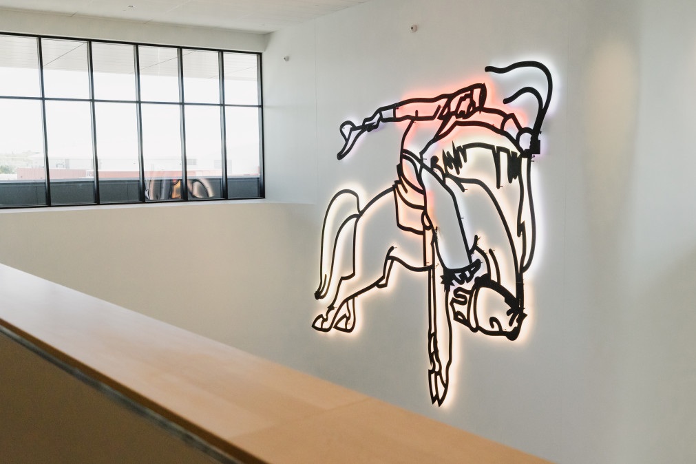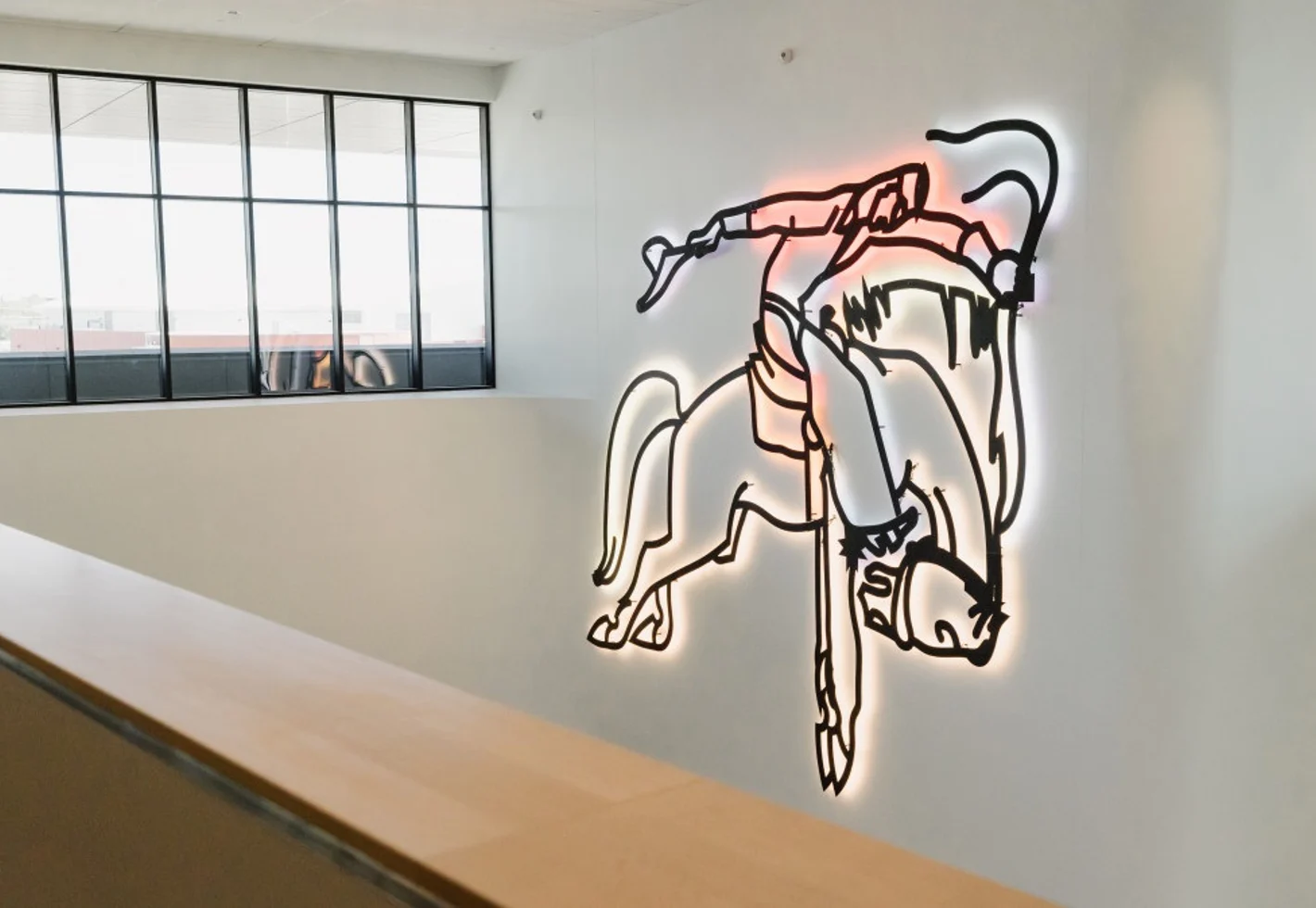 Once a beacon for concerts, hockey games, Olympic events, and rodeos at the Stampede Corral, the iconic Neon Cowboy witnessed decades of celebrations. Now, it has been reimagined at nearly a 1:1 scale as a marquee installation in the expanded BMO Centre.